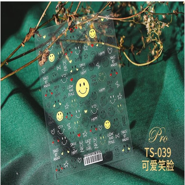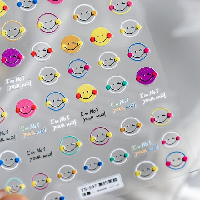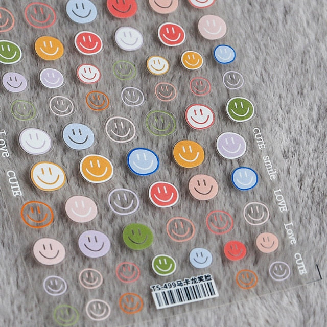 1 Sheet 5D High Quality Ultra-Thin Adhesive Smiley Nail Art Stickers Spring and Summer Cute Smile DIY Manicure Decal Decoration
