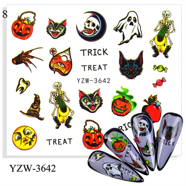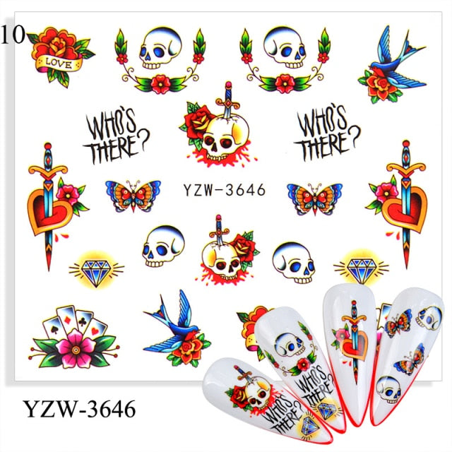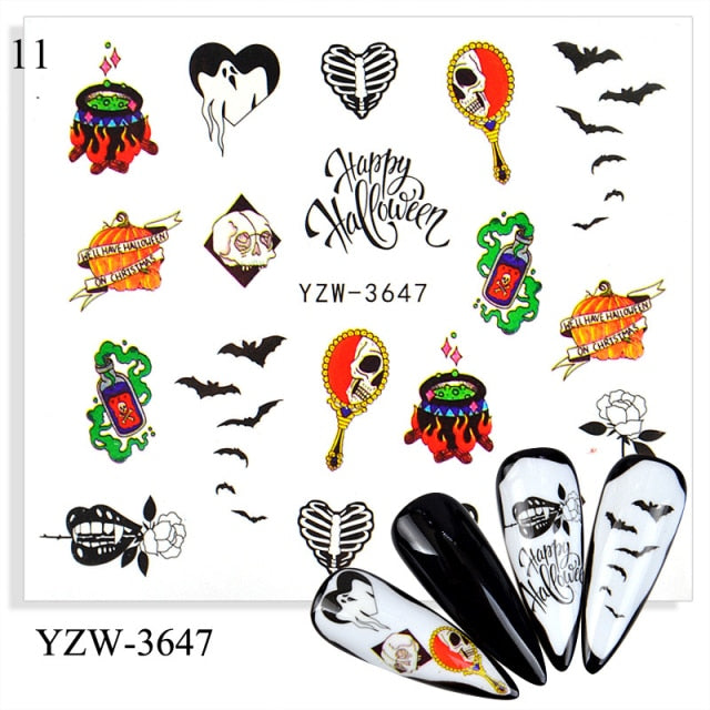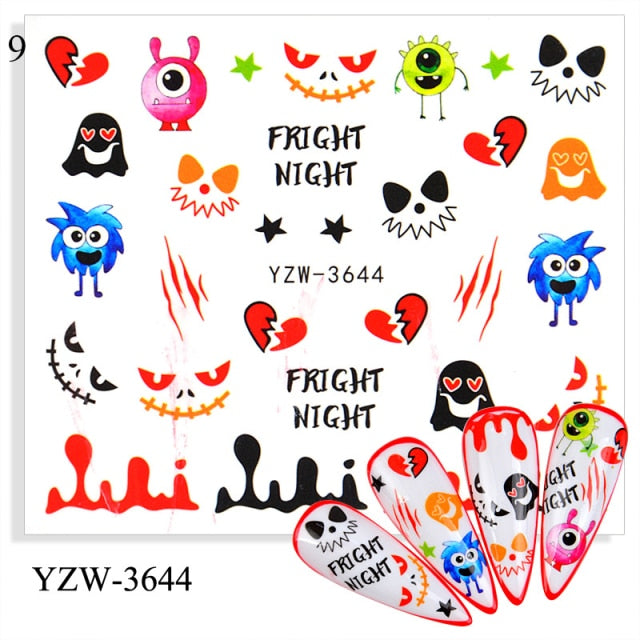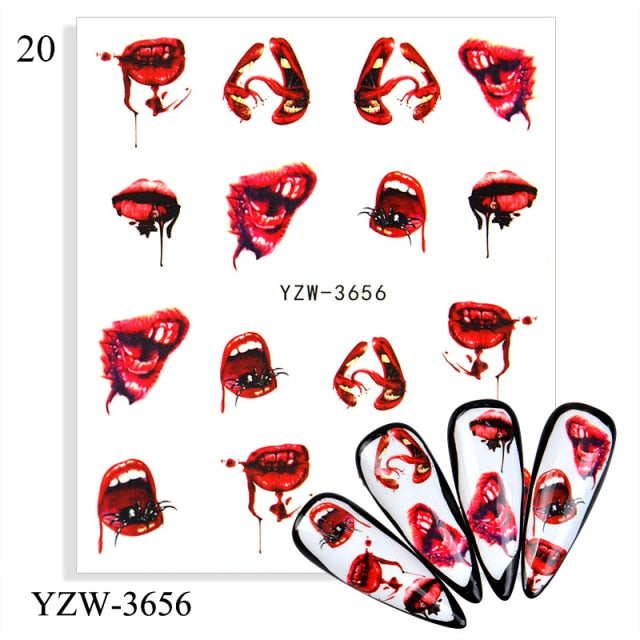 1 Sheet Halloween Nail Stickers Water Transfer Self Adhesive Nail Art Tattoo Big Lips/palms Decals for DIY Nail Art Decor Wraps