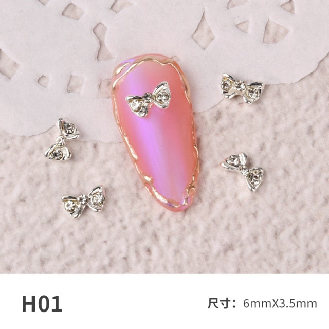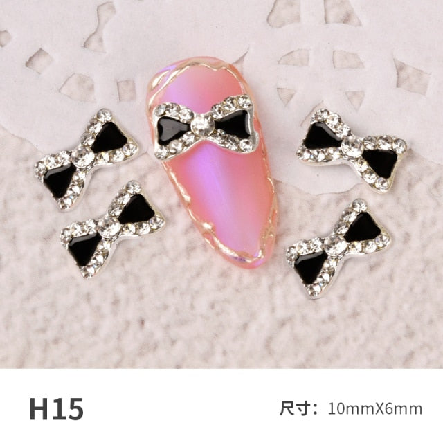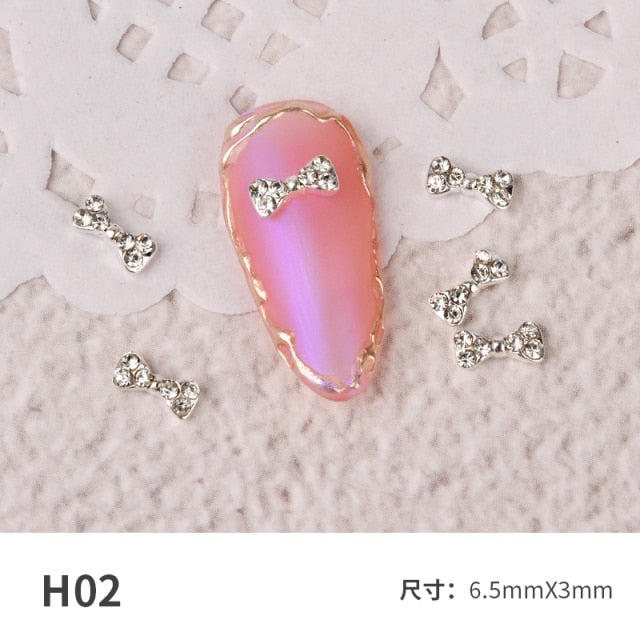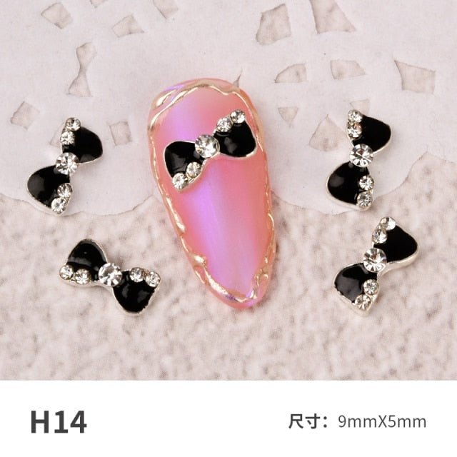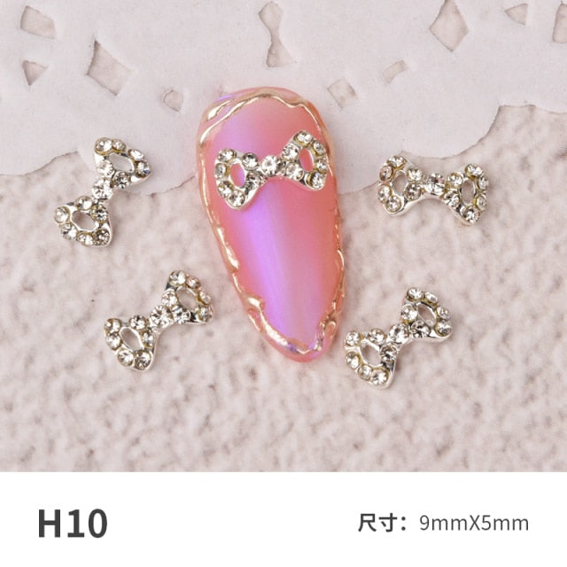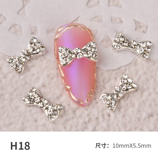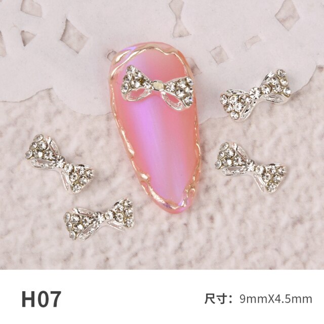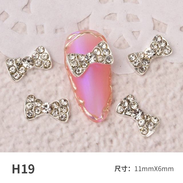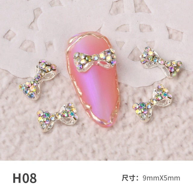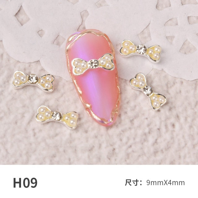 10 pieces of bow nail art jewelry pearl new super flash rhinestones Japanese pearl bow flat nails decoration diamond crystal