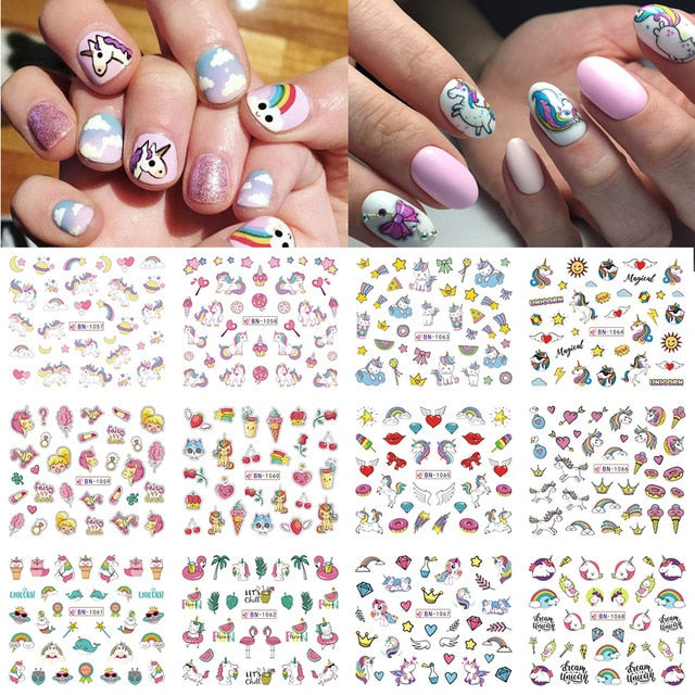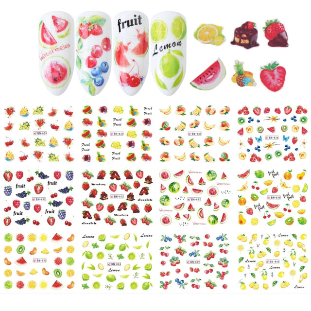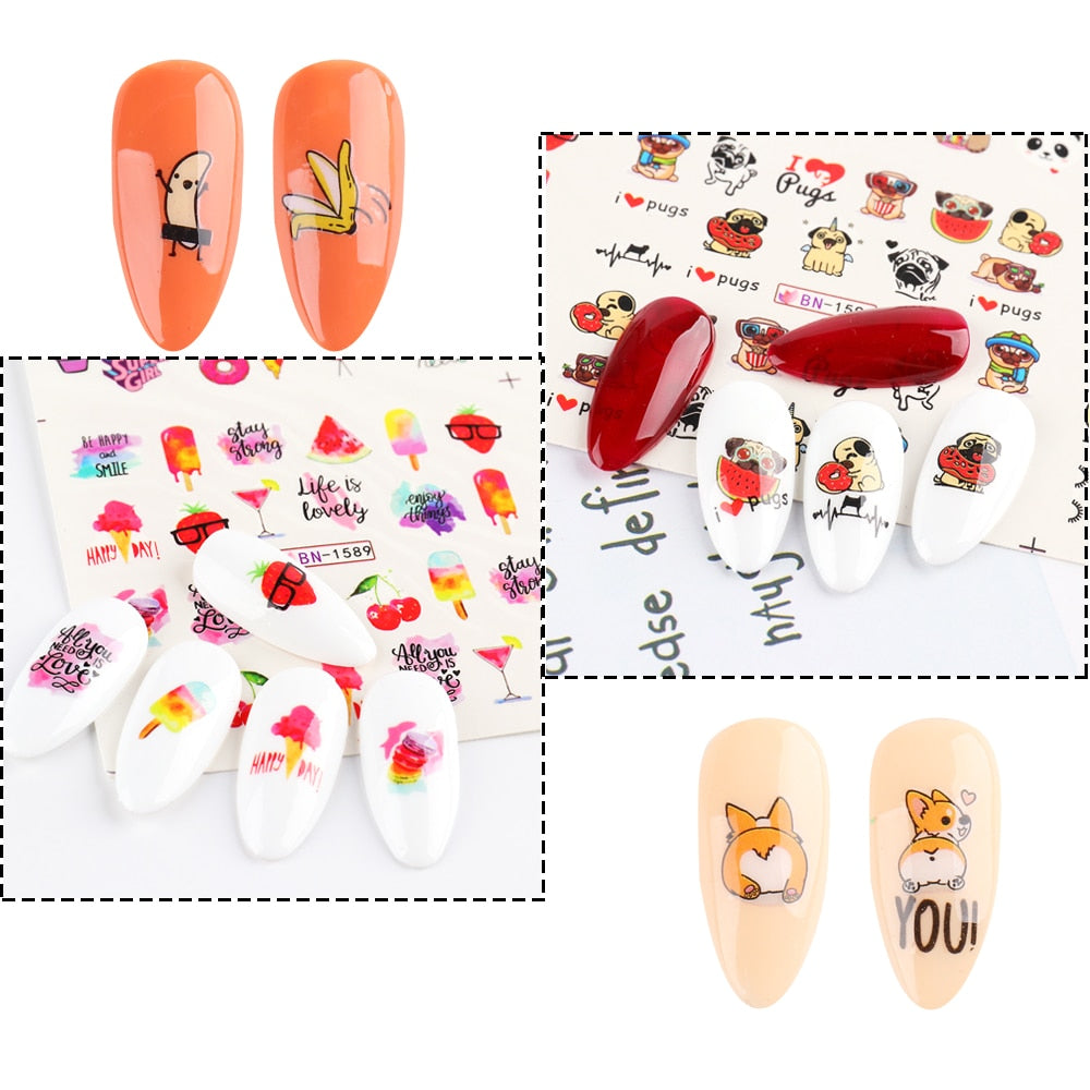 12pcs Avocado Nail Stickers Cute Cartoon Transfer Sliders For Nails Dog Cat Water Decals Anime Tatto For Manicure