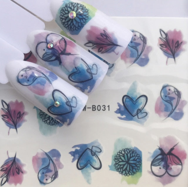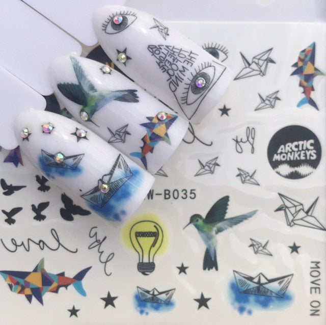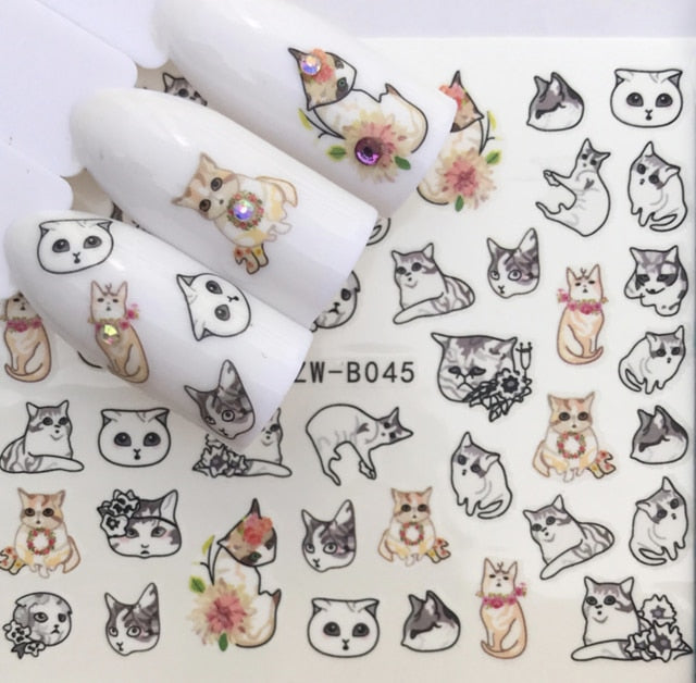 1pc Water Transfer Nail Stickers Decals Nail Art Cartoon Emoticons and Animal Patterns 6.4cm*5.2cm