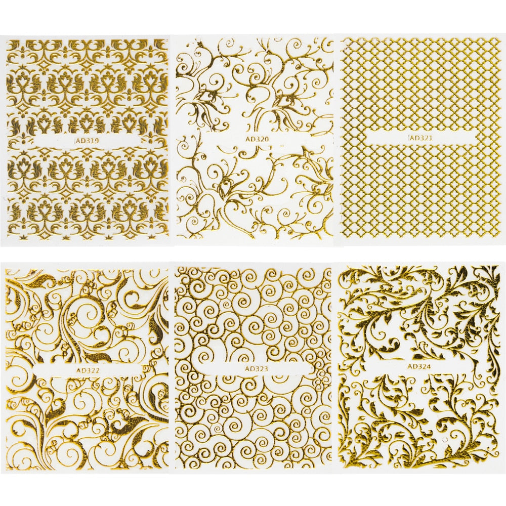 20 Sheets Gold 3d Nail Art Stickers Hollow Decals Mixed Designs Adhesive Flower Nail Tips Decorations Salon Accessory