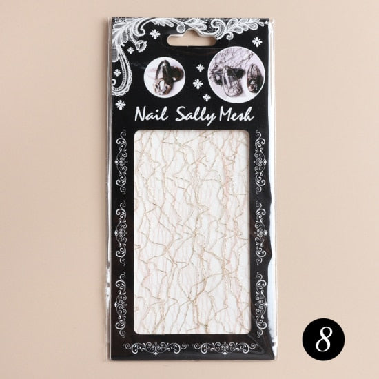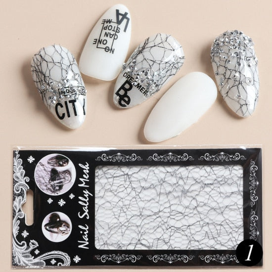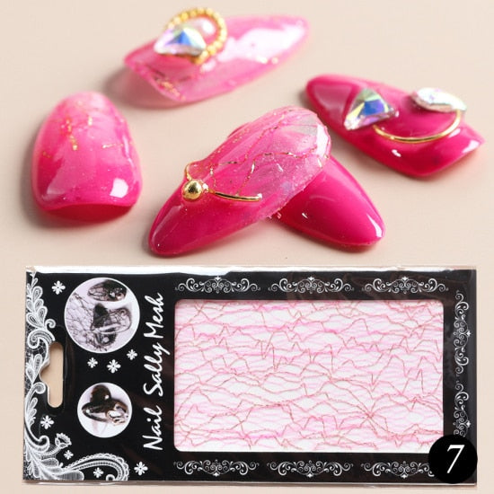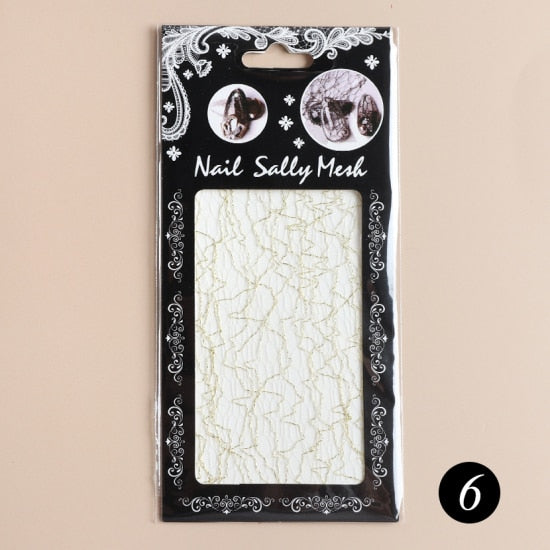 3D Mesh Nail Art Sticker Gold Silver Lace Hollow Net Line Nail Foil Design Manicure Decal Wraps Decorations Accessories