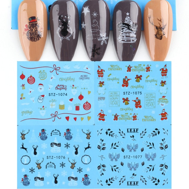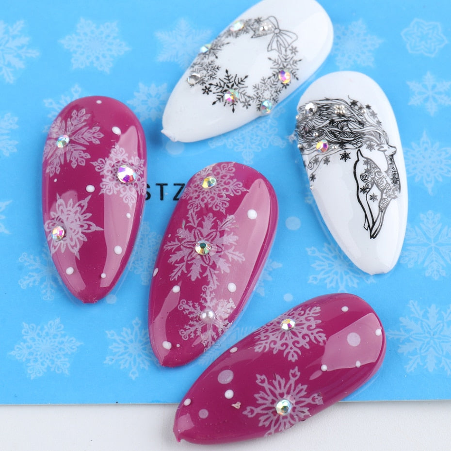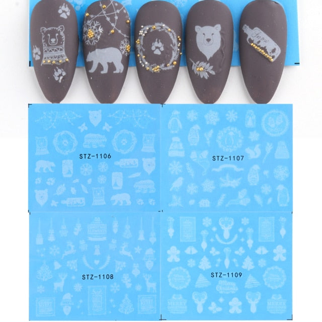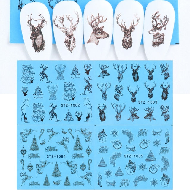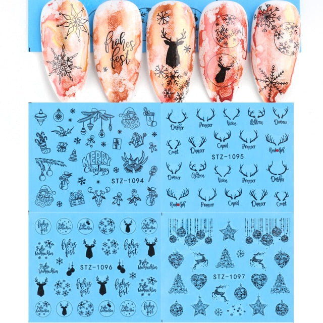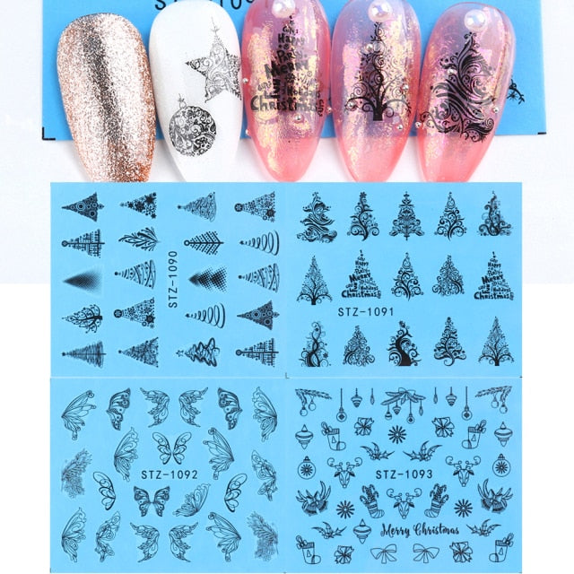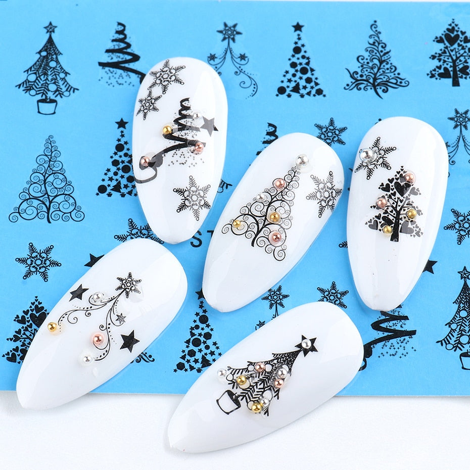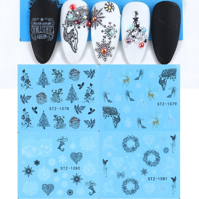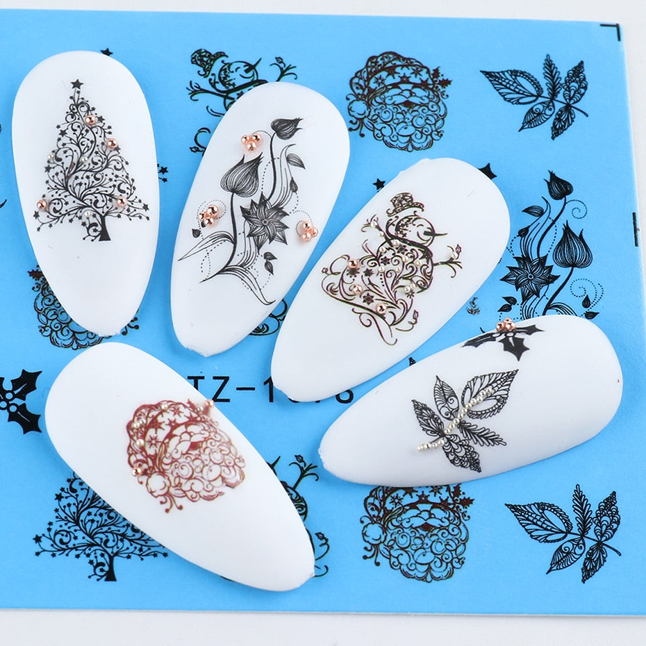 4pcs Black Lace Christmas Stickers For Nail Art Xmas Tree Deer Design Water Decals Transfer Slider Manicure Tools