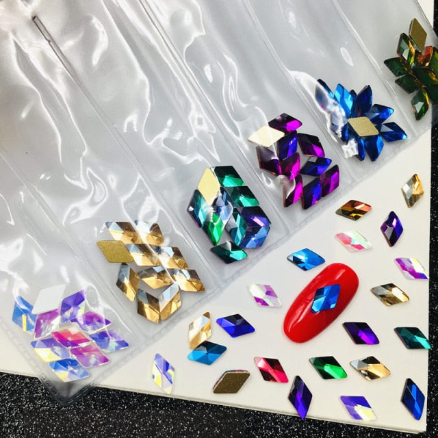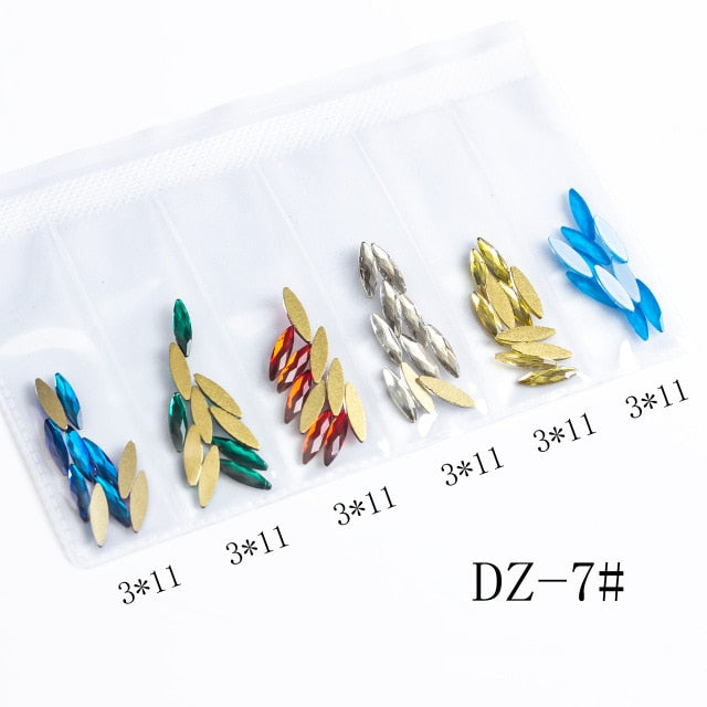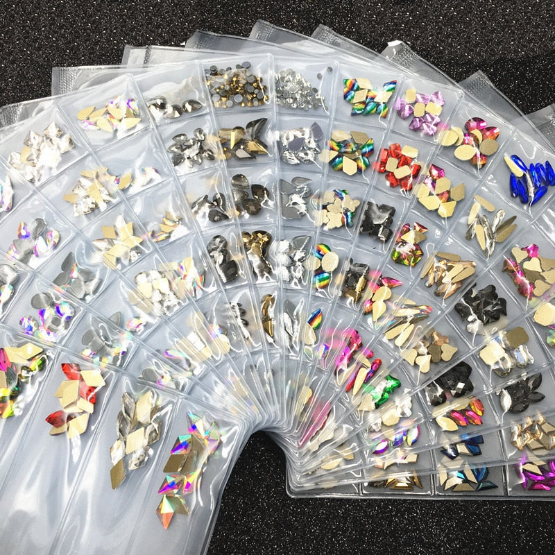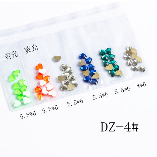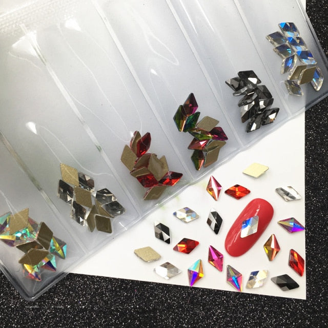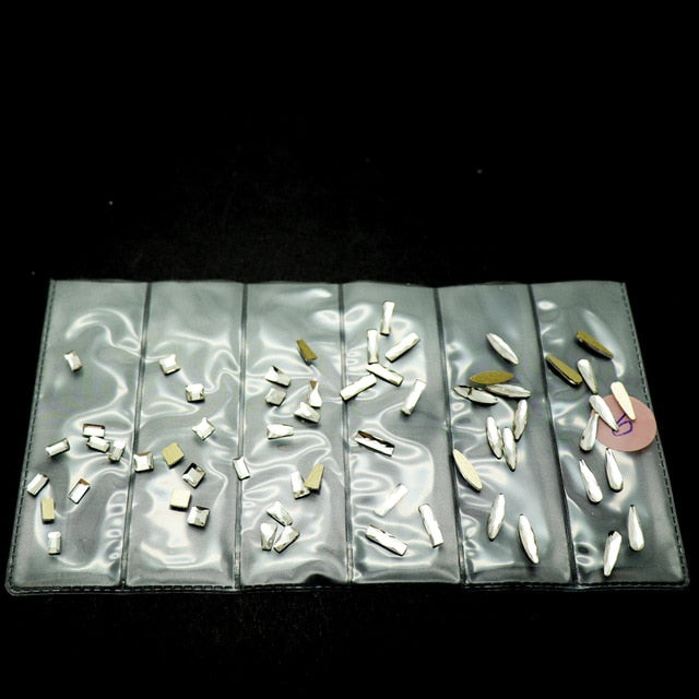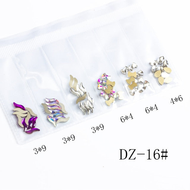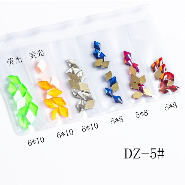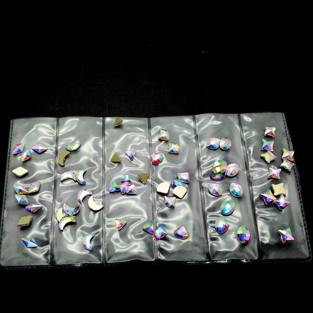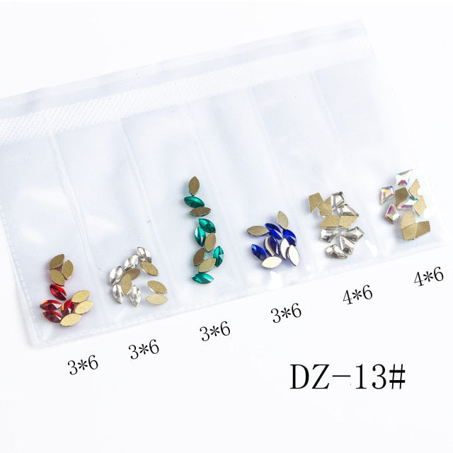 60pcs Nail Crystals Gems Mix 6 design Rhinestones for Nails 3D Nail Art Decorations Flatback Shaped Strass Stone DIY Use