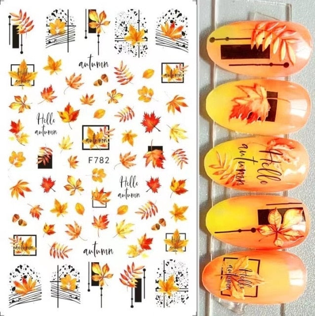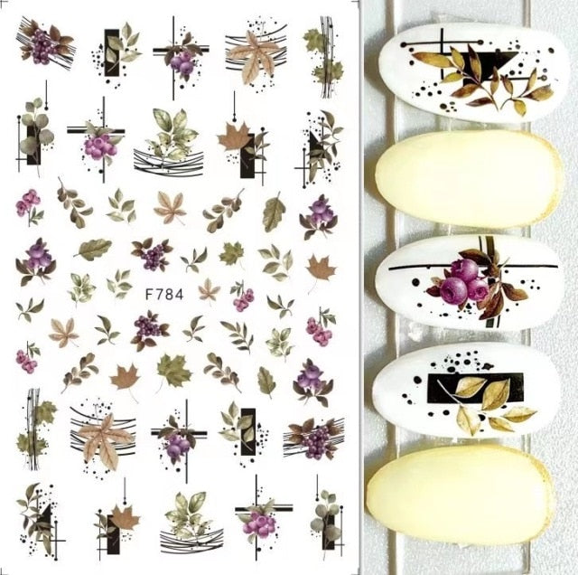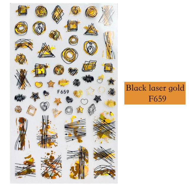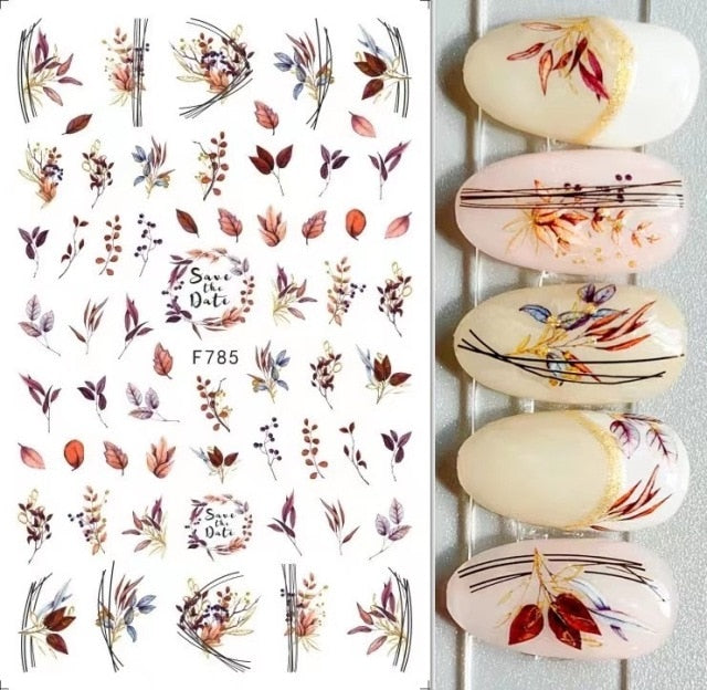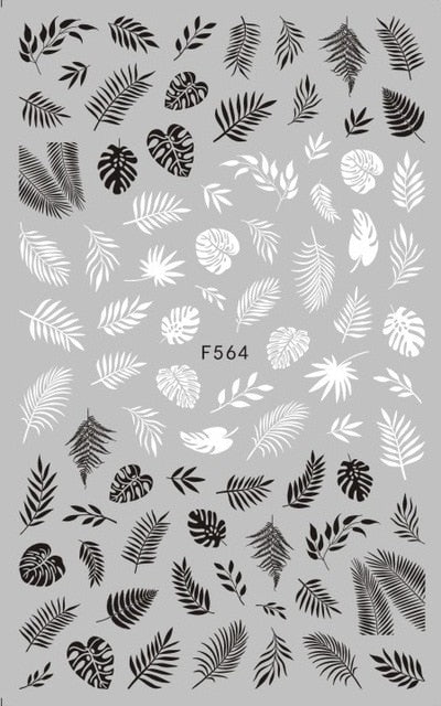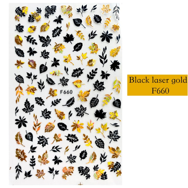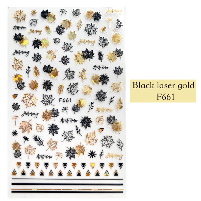Black Laser Gold Autumn Leaf 3D Nail Sticker Coconut Tree Leaf Pattern Adhesive Transfer Sticker Shiny DIY Nail Decoration