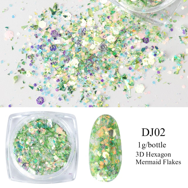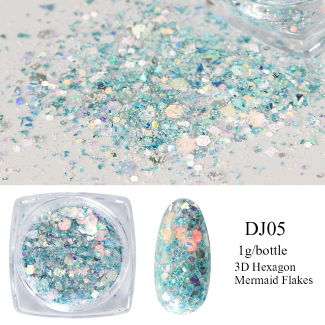 Styles 1: Mermaid Holographic Opal Powder on Nails