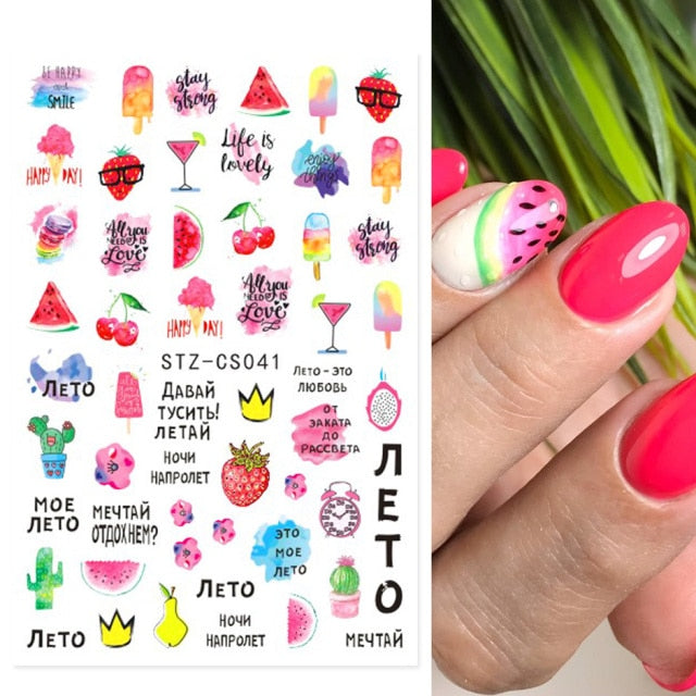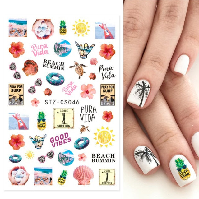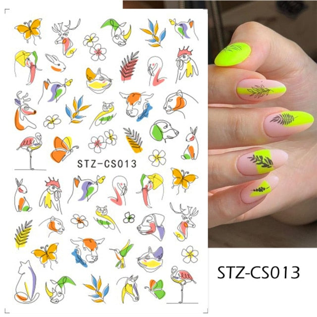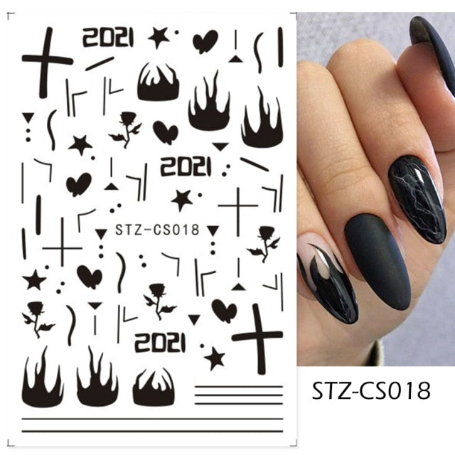 Fire Flame Nail Art Stickers 3D Pink Black Design Adhesive Slider Foils Blue DIY Wraps Summer Decoration Decals