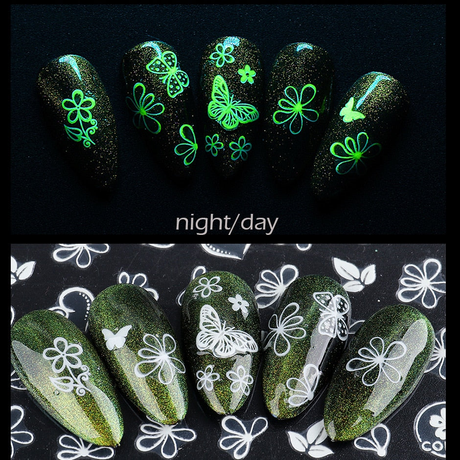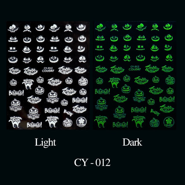 Glow In The Dark Nail Stickers Halloween 2021 Luminous Stickers On Nails Decorations Glitter Manicure Sliders Cool Luxury Party