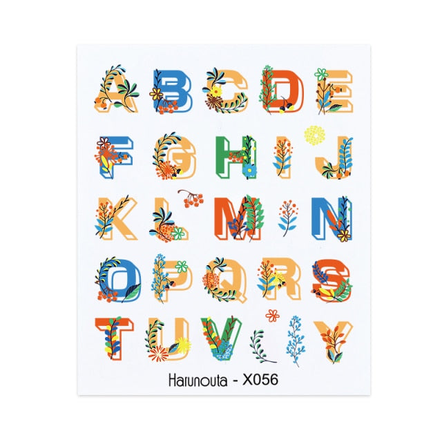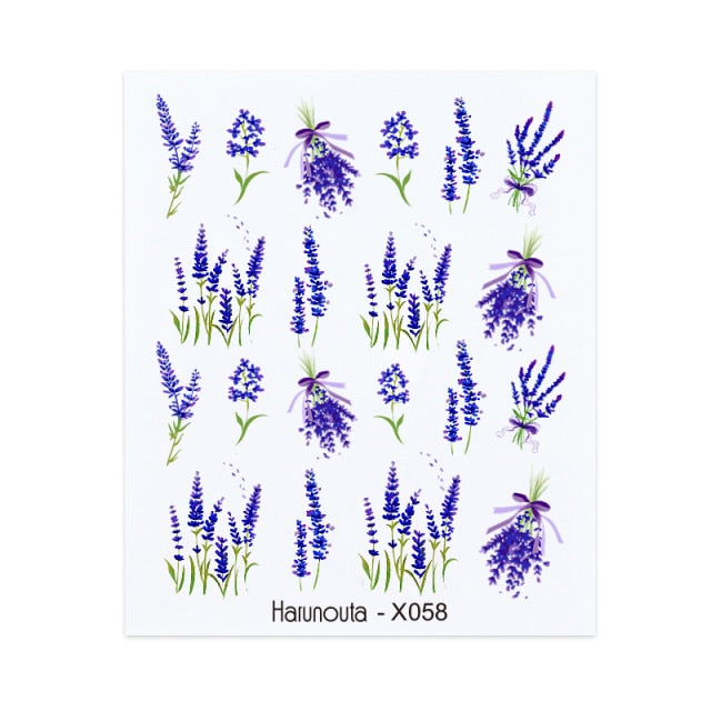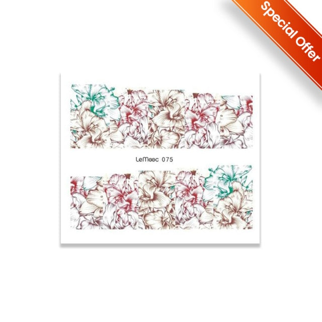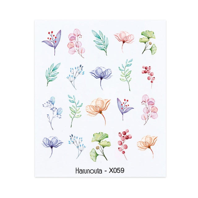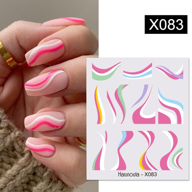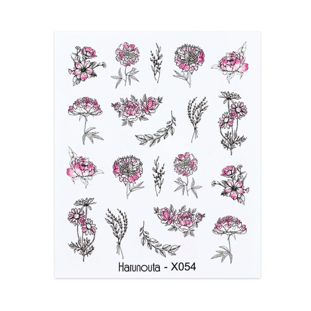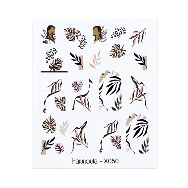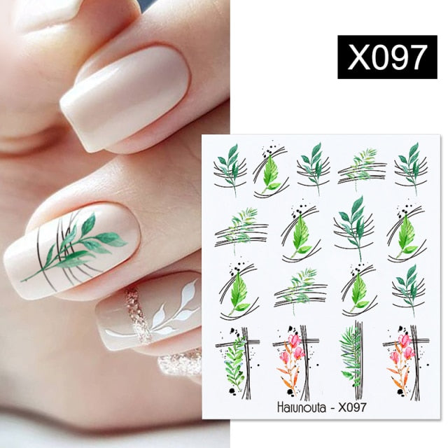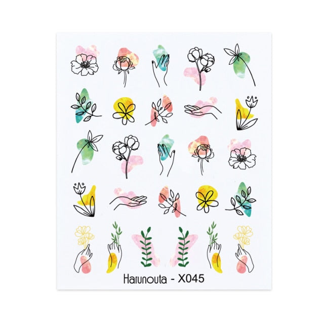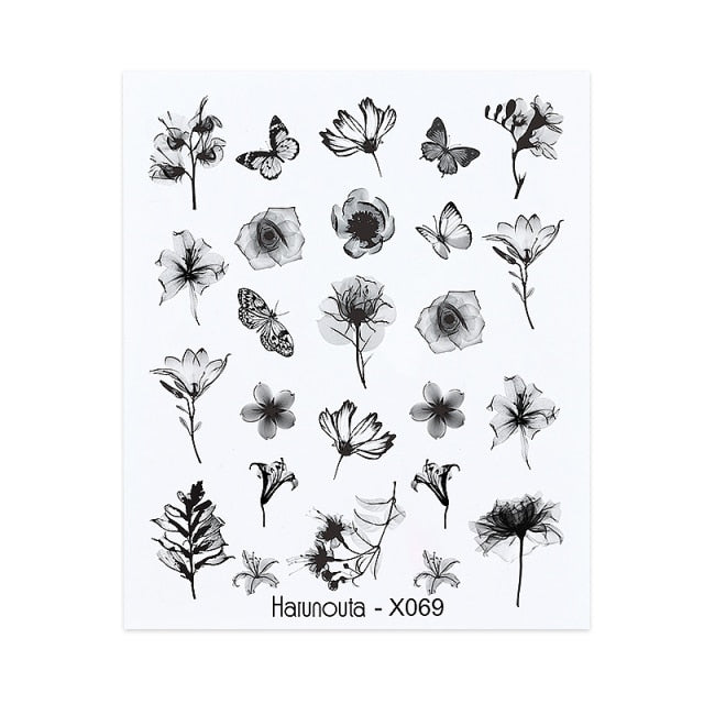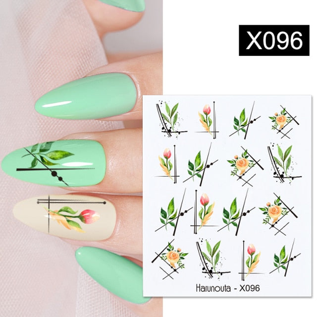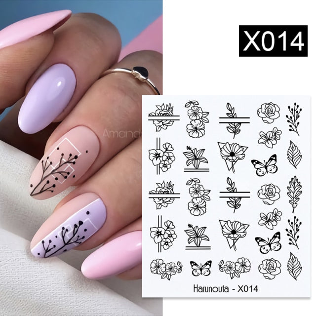Harunouta Black Lines Flower Leaves Water Decals Stickers Floral Face Marble Pattern Slider For Nails Summer Nail Art Decoration