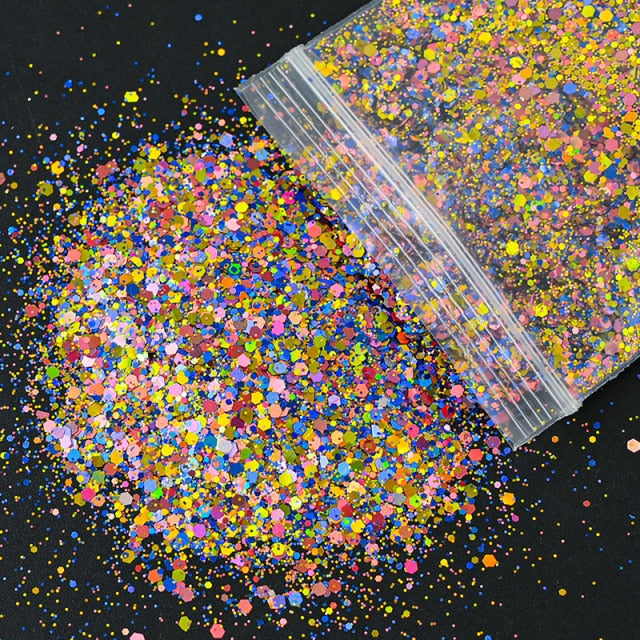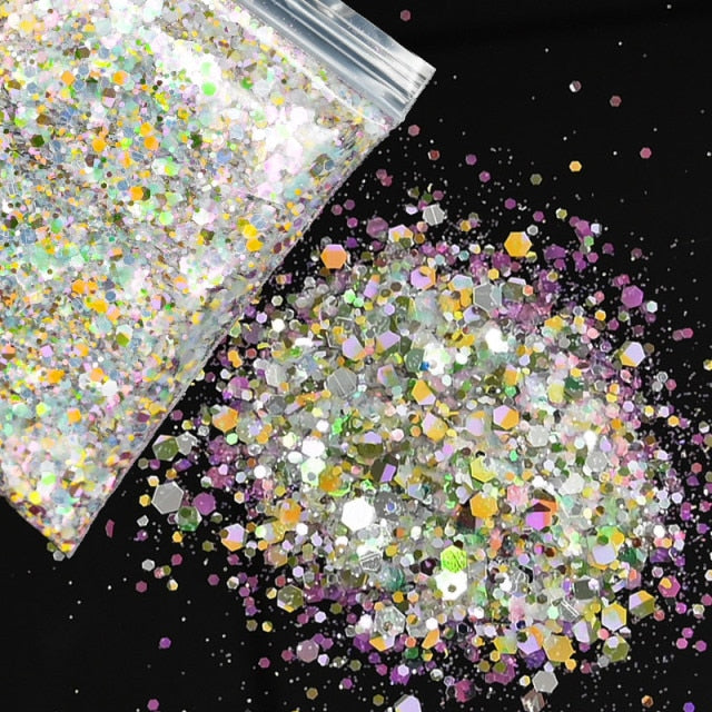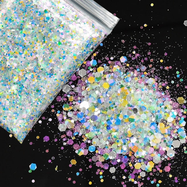 Holographic Mixed Hexagon Shape Chunky Nail Glitter Sequins Sparkly Flakes Slices Manicure