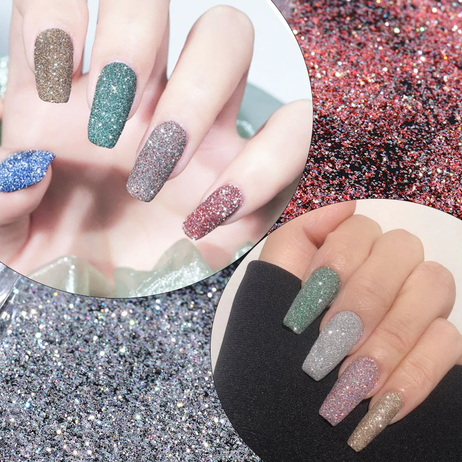 Holographic Nail Glitter Laser Shiny Nail Art Sequins Silver Diamond Powder Dust Gel Nail Polish Manicure Decor
