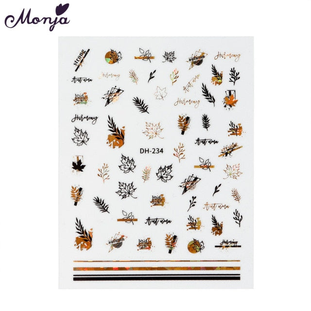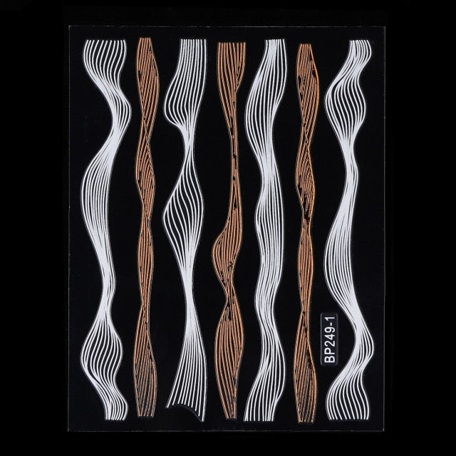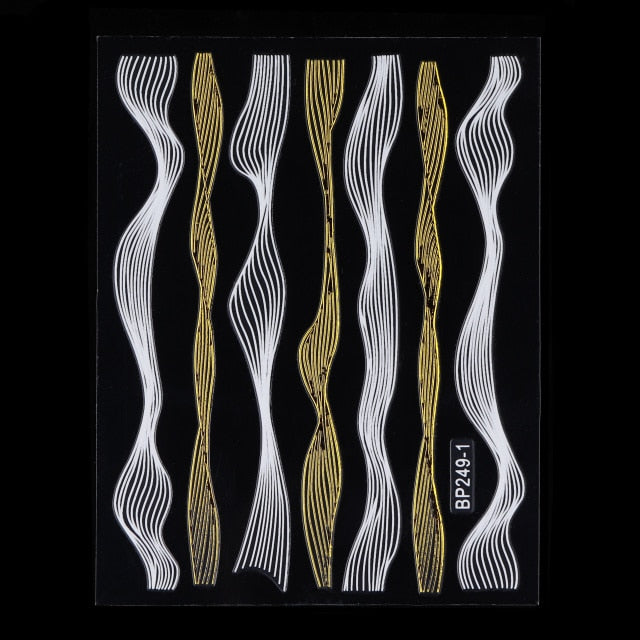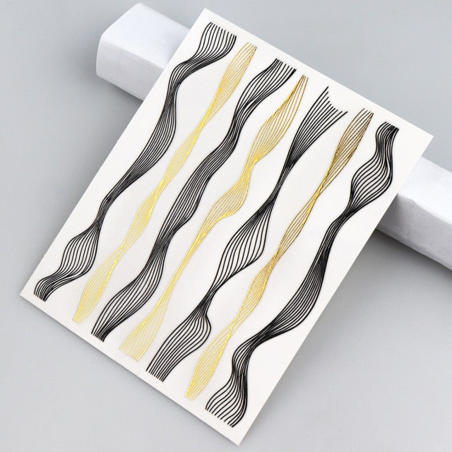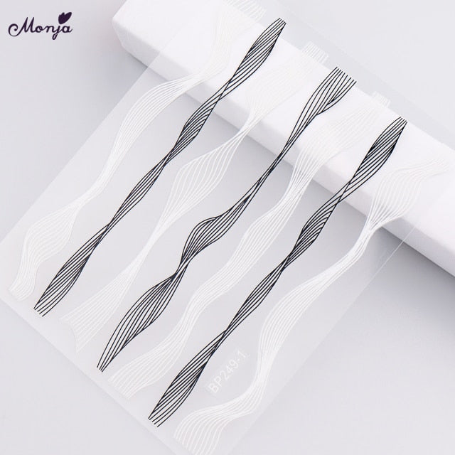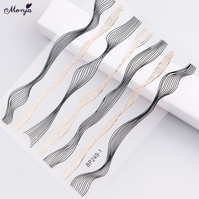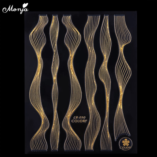 Monja Nail Art Sticker Laser Gold Metal Stripe Wave Line Tape Self-Adhesive Transfer Foils 3D DIY Decal Manicure Tips Decoration