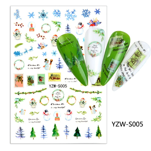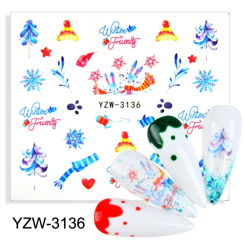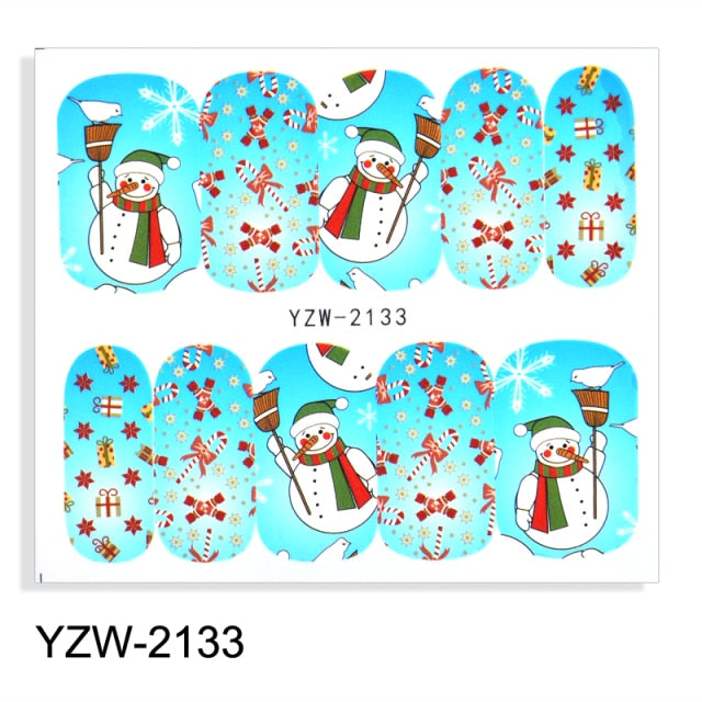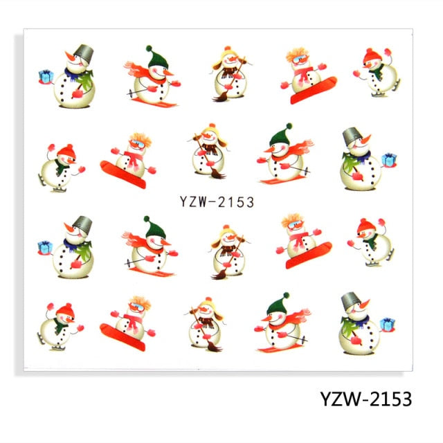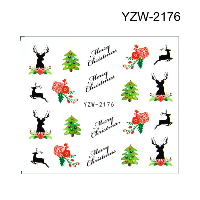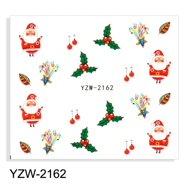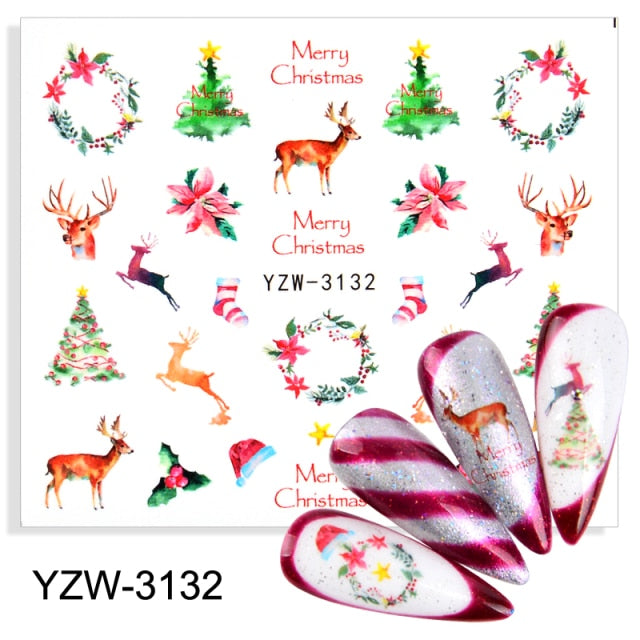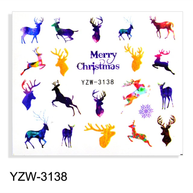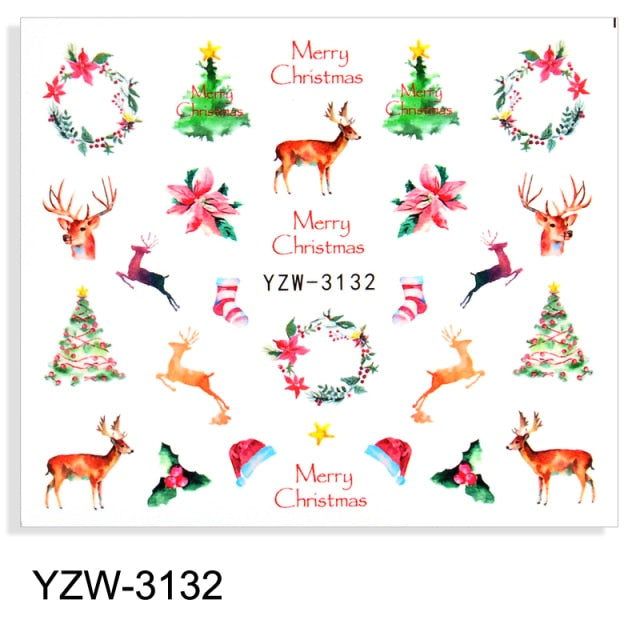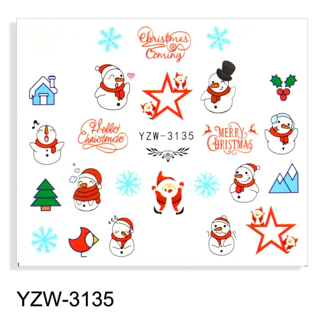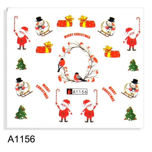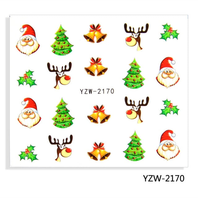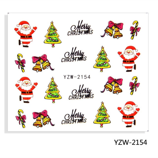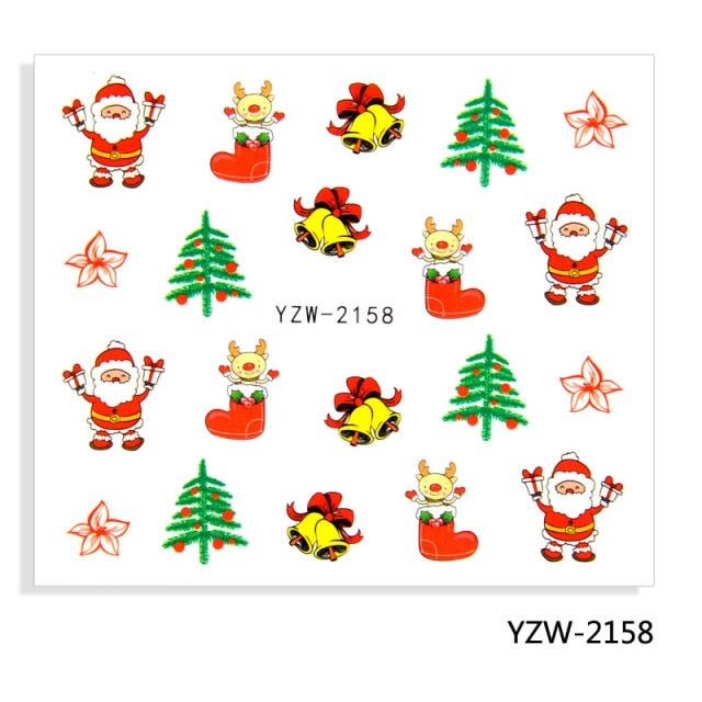 Watermark Cartoon Christmas Nail Adhesive Stickers Santas Snowman Tree Winter Xmas Nail Art Manicure Decoration Tip