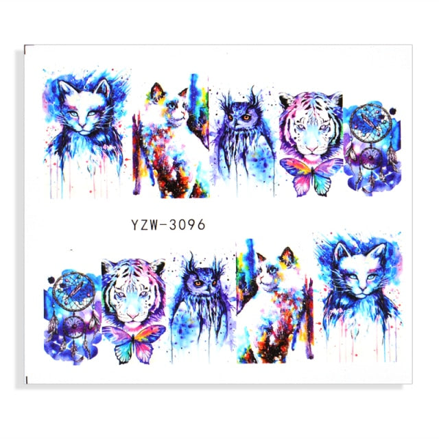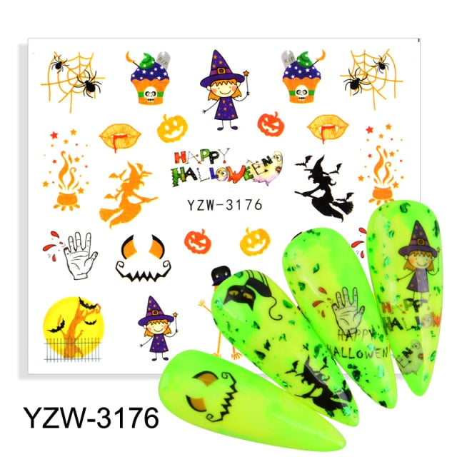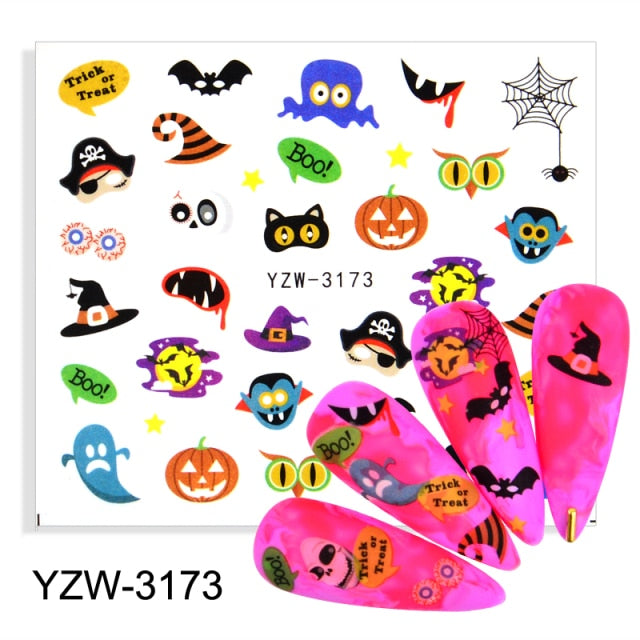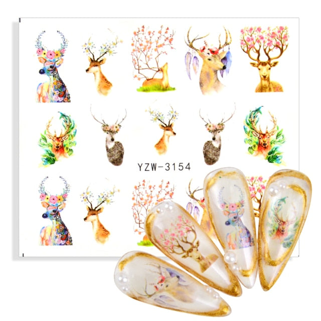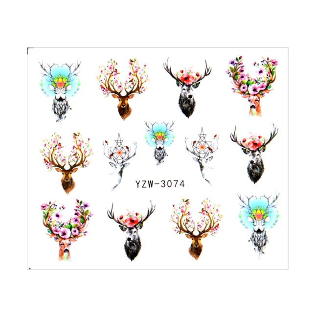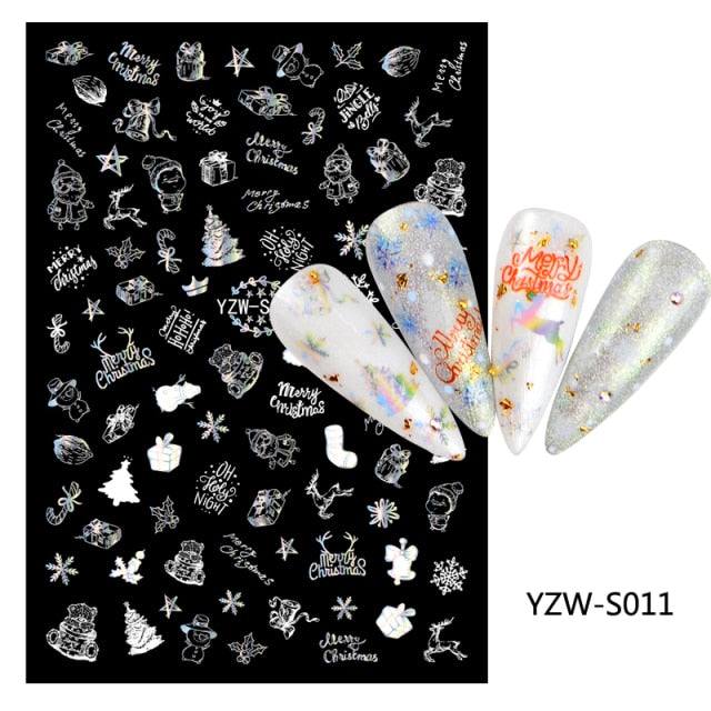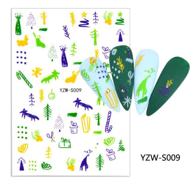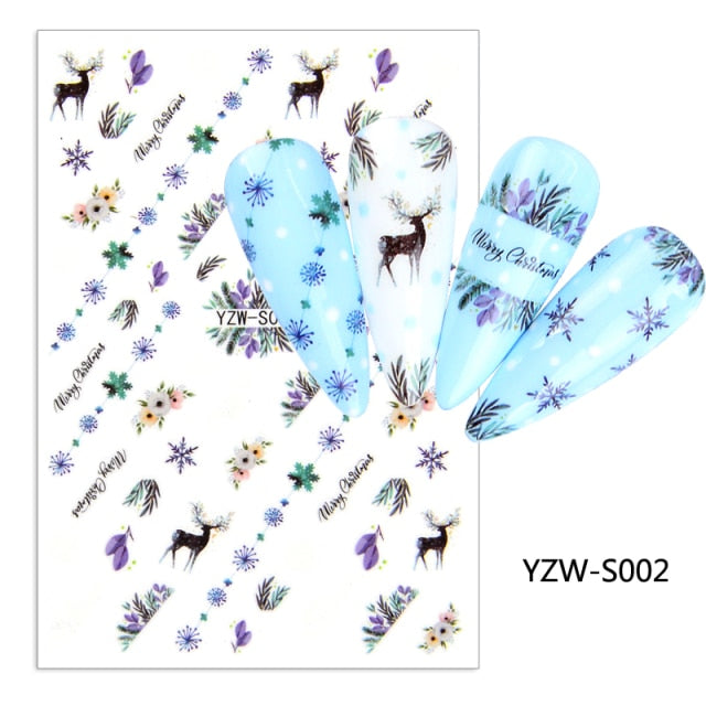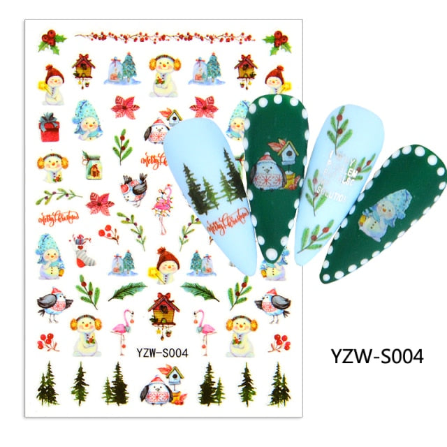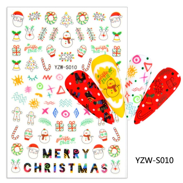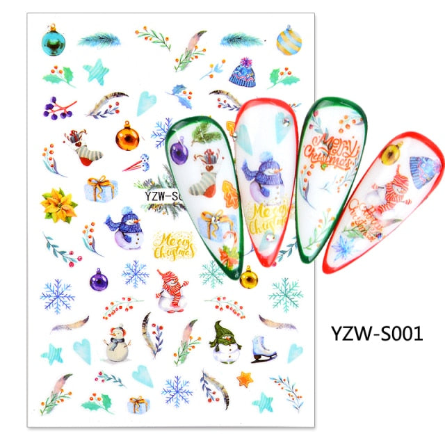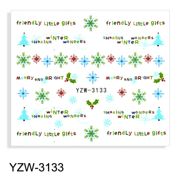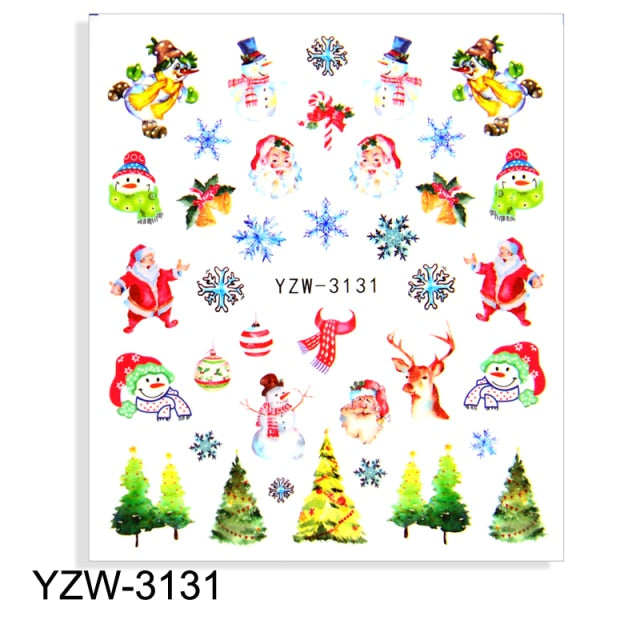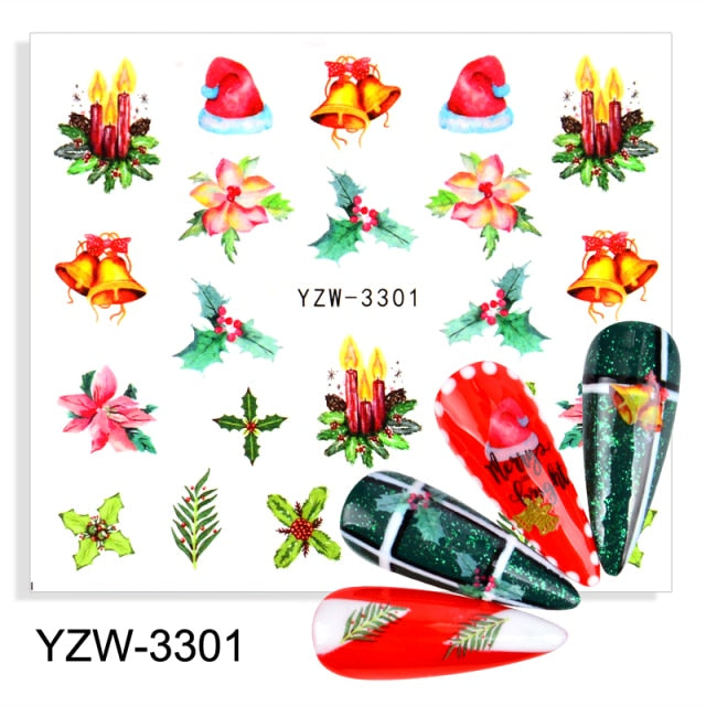 Watermark Cartoon Christmas Nail Adhesive Stickers Santas Snowman Tree Winter Xmas Nail Art Manicure Decoration Tip