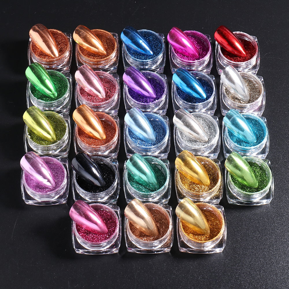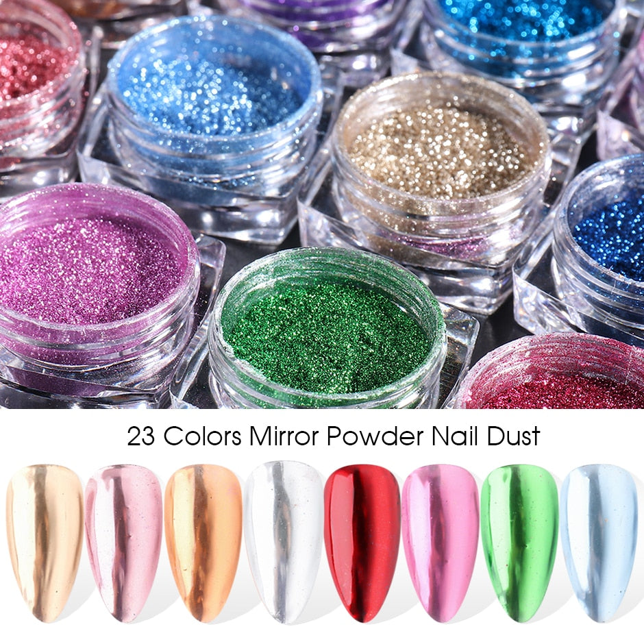 23pc Nail Glitter Set Magic Mirror Metal Powder Nail Chrome Pigment Gel Polishing Rose Gold Sliver Accessories Dust