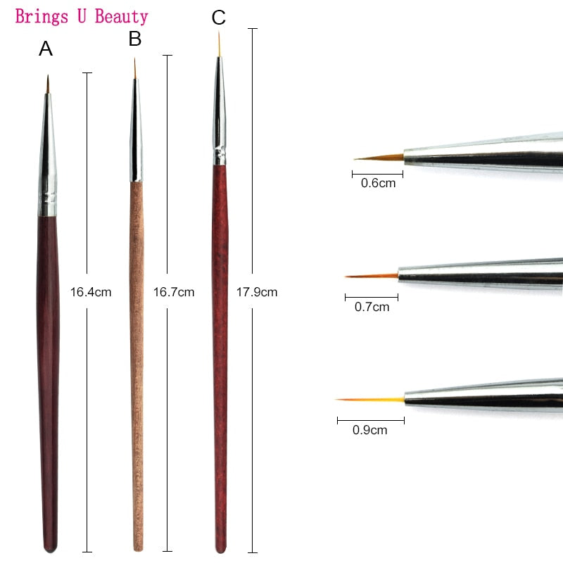 3pcs Nail Art Drawing Striping Liner Pen Brush DIY Painting Flower Drawing Lines Set Manicure Nails Design Professional Home Use