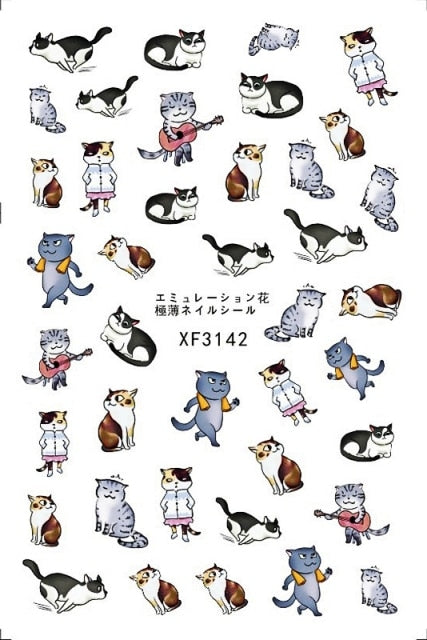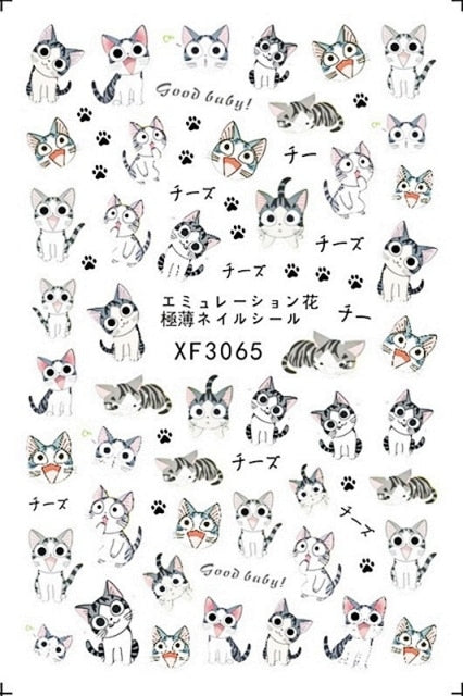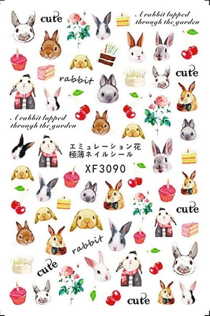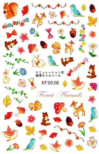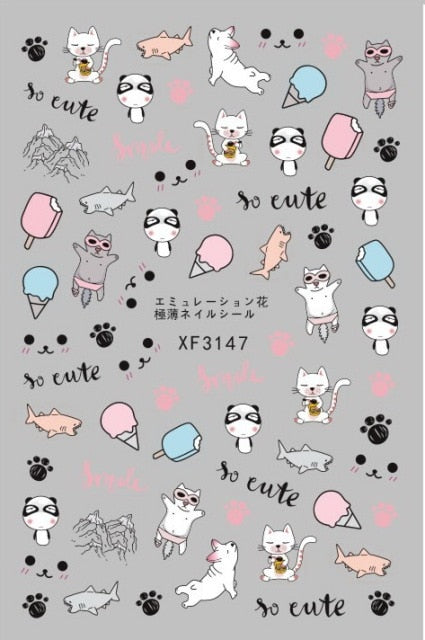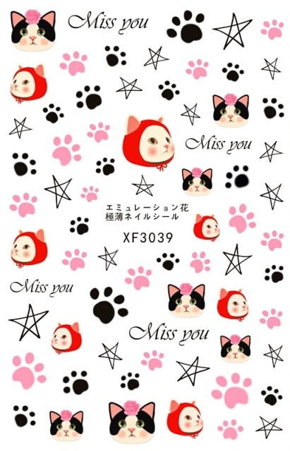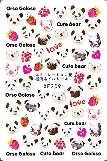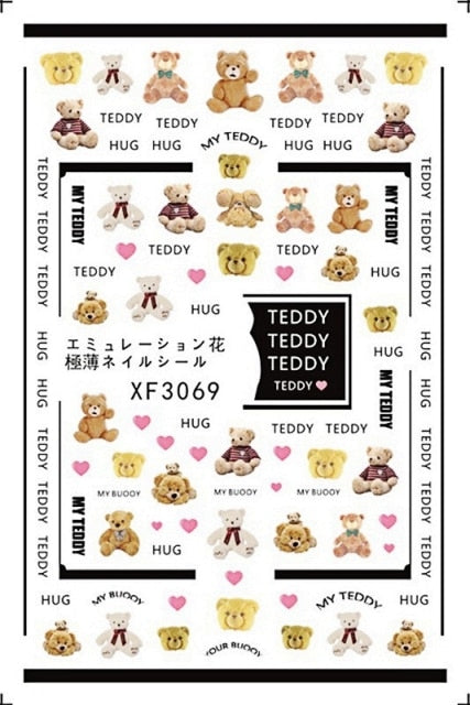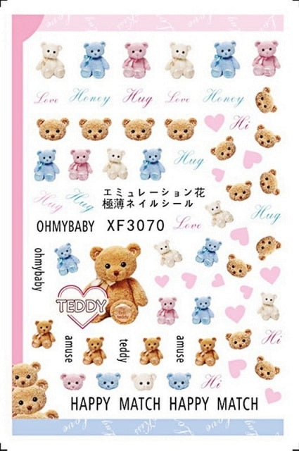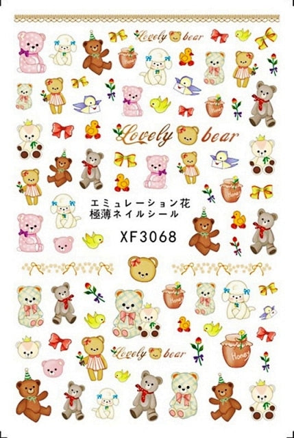 Bear Set Nails Sticker for Nail Decoration Back Glue Nails Art Stickers Decals Design Manicure Cute Cartoon Transfer Foil Decals