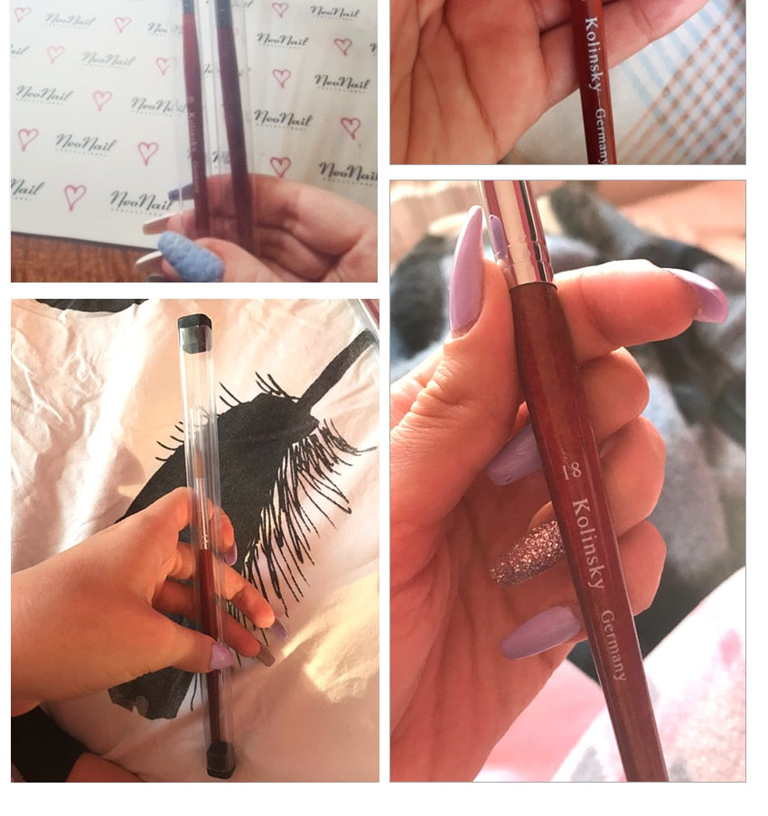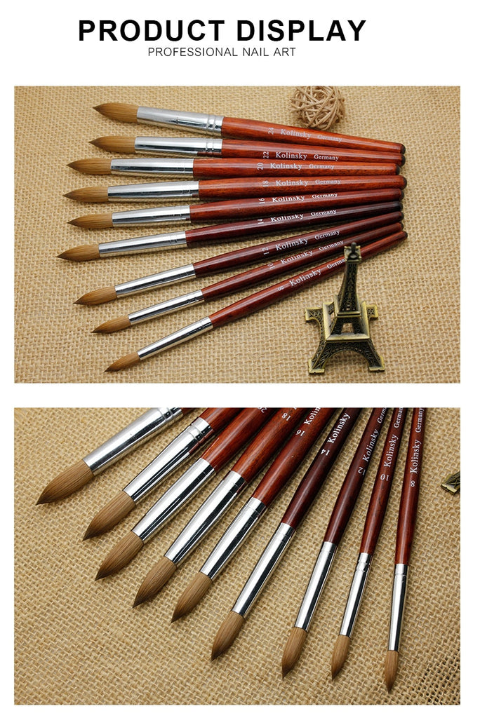 Kolinsky Acrylic Nail Brush Good Quality Nail Art Mink Brush Wood Handle Gel Builder Manicure Brush Drawing Tools Size 8-24