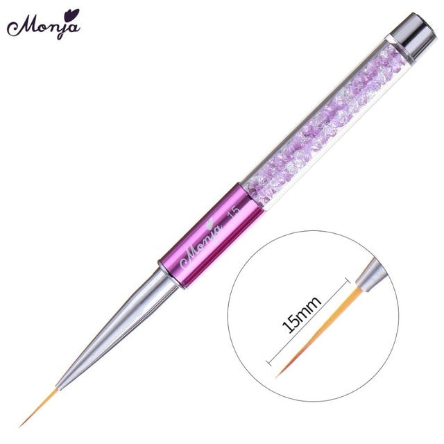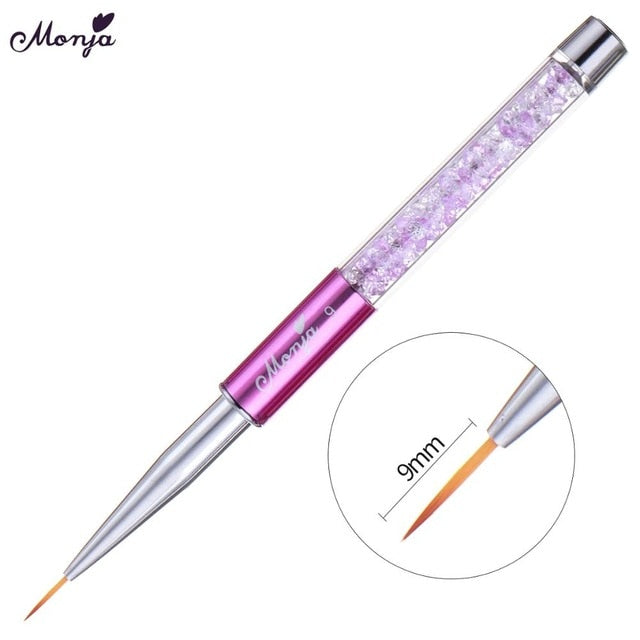 Monja Nail Art Metal Acrylic Liquid Powder Carving UV Gel Extension Builder French Flower Stripe Painting Drawing Liner Brush