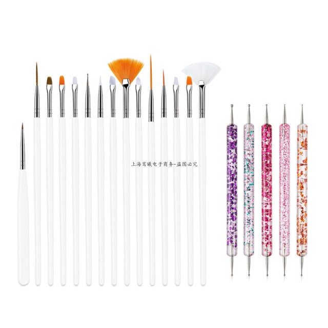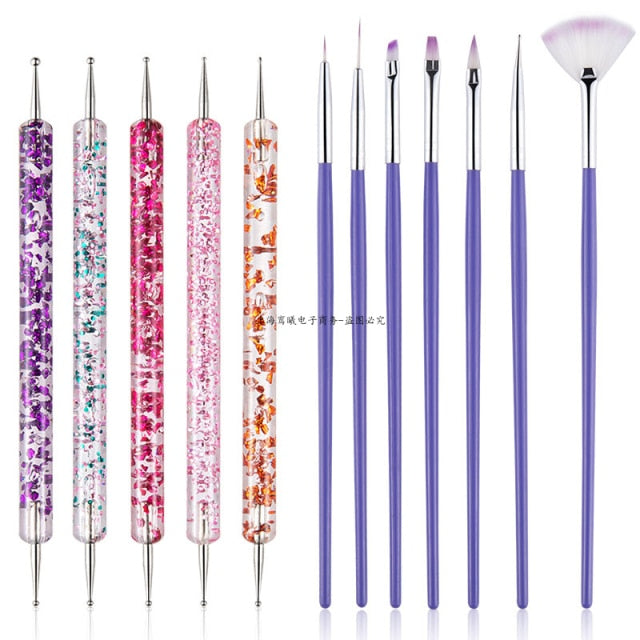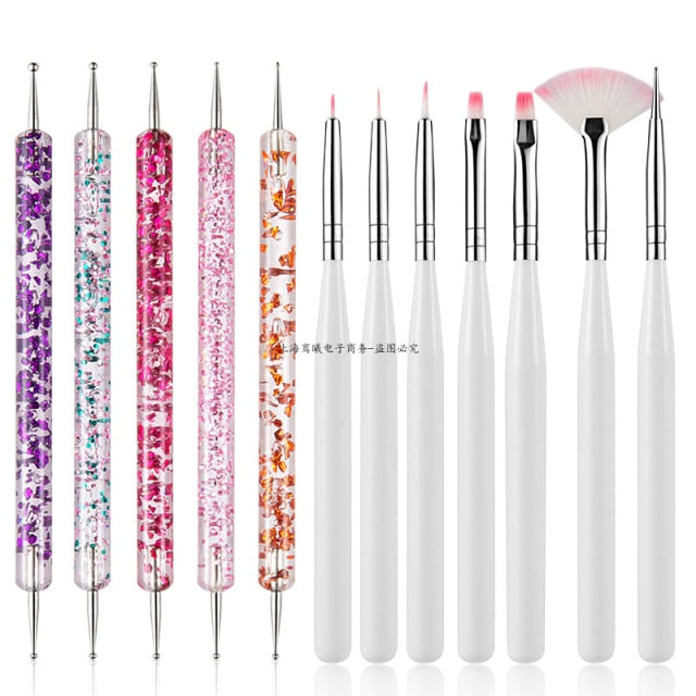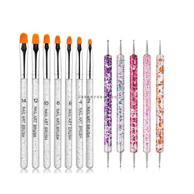 Multiple Nail Art Brush Design Tip Drawing Carving Dotting Nail Pen Builder Flat Liner Acrylic Gel Polish Tool Manicure