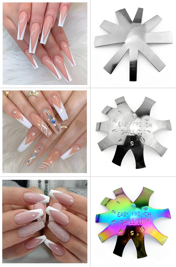 Pro 9 Sizes Easy French Smile Cut V Line Almond Shape Tips Manicure Edge Trimmer Nail Cutter Acrylic Pink White French Nails