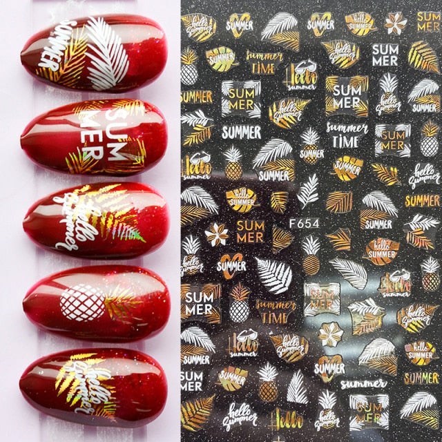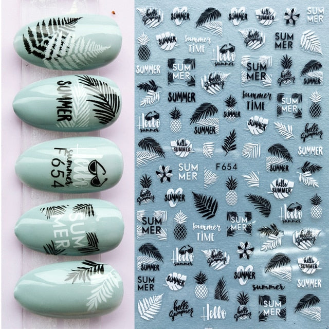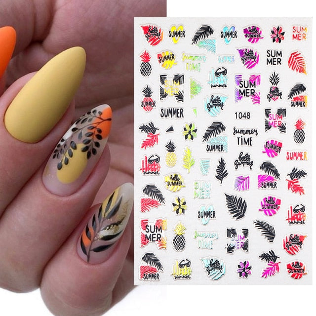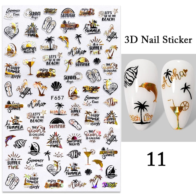 Summer Tropical Beach Coconut Tree Slippers 3D Nail Sticker Leaves Shell Transfer Decals Slider Decoration Manicures