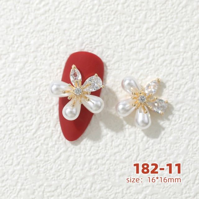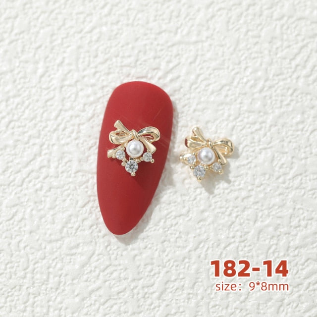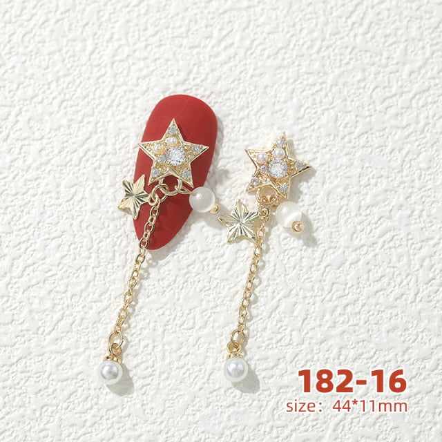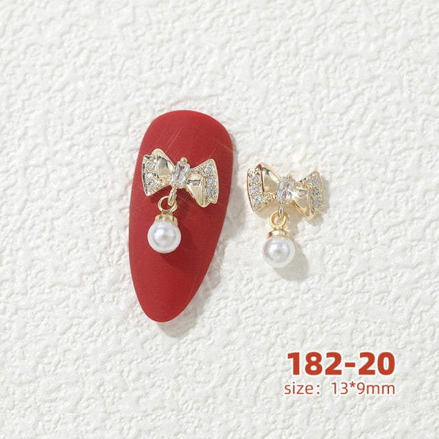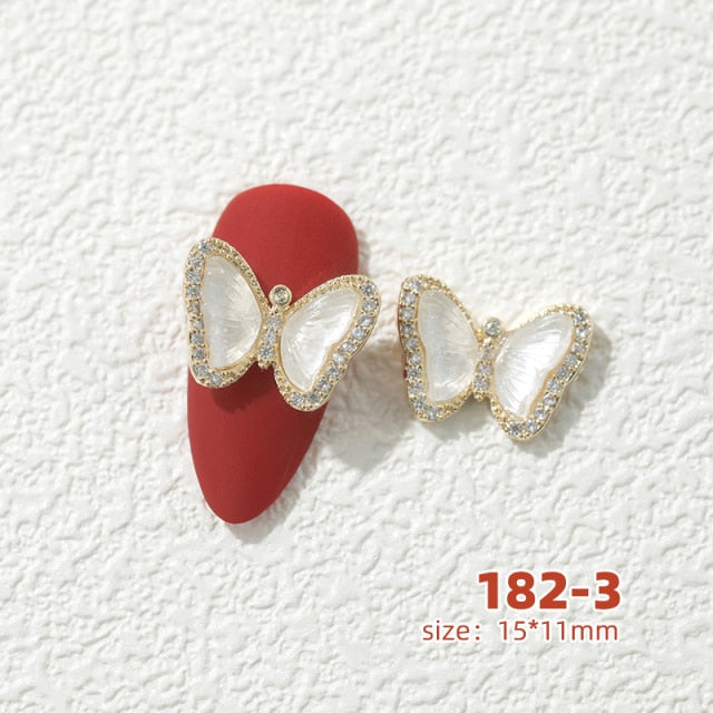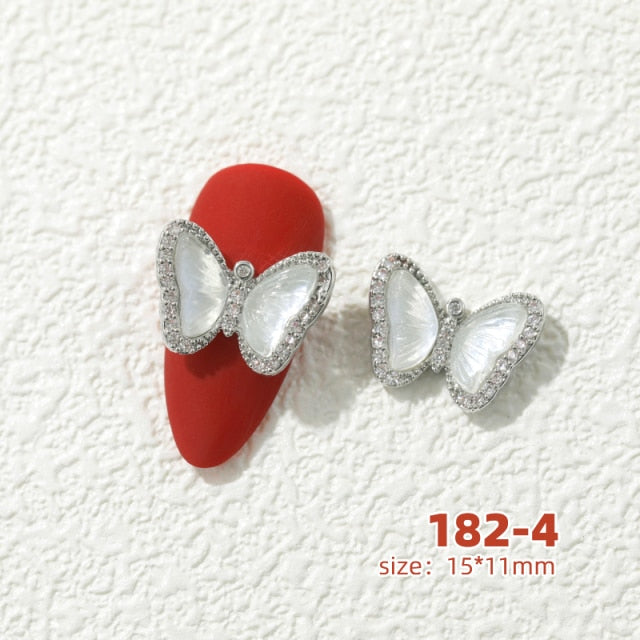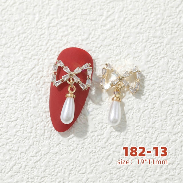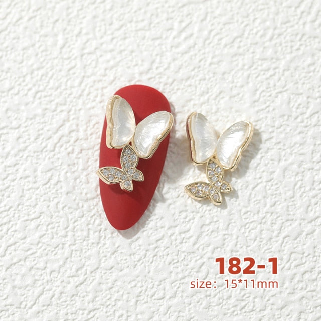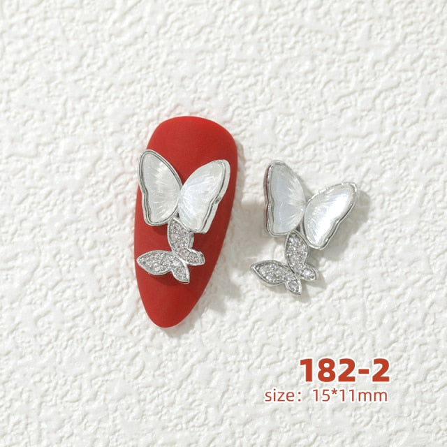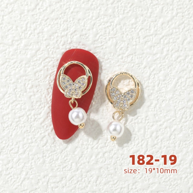 Newest 2Pieces Lot Pendant Chain 3D Alloy Butterfly Nail Art Zircon Pearl Metal Manicure Nails DIY Accessories Nail Decoration