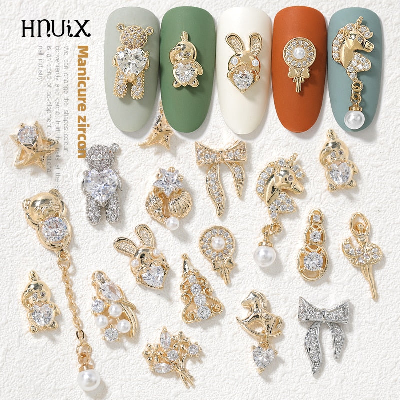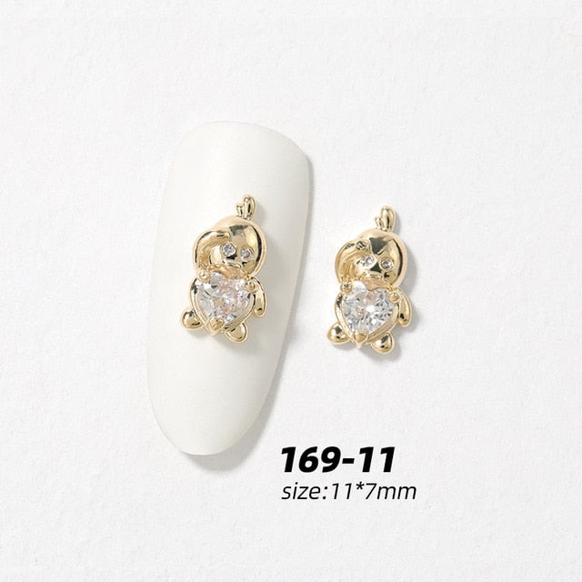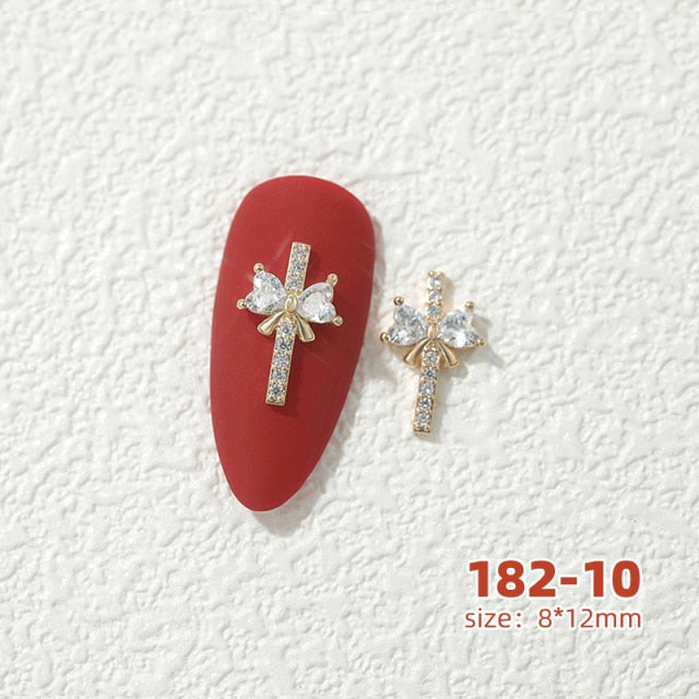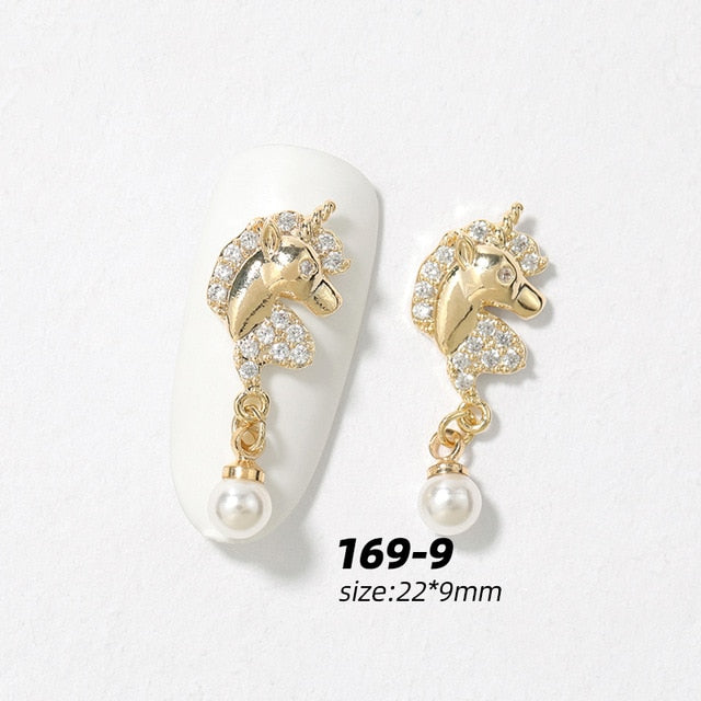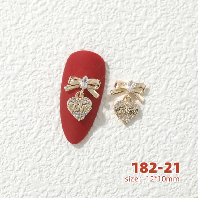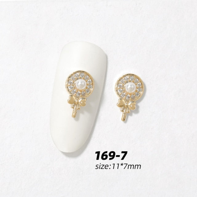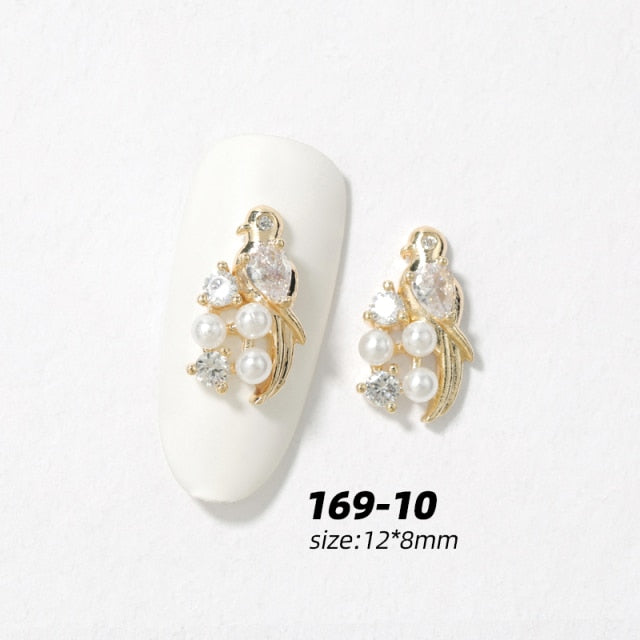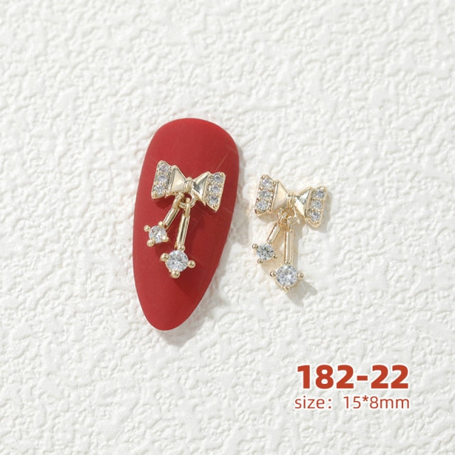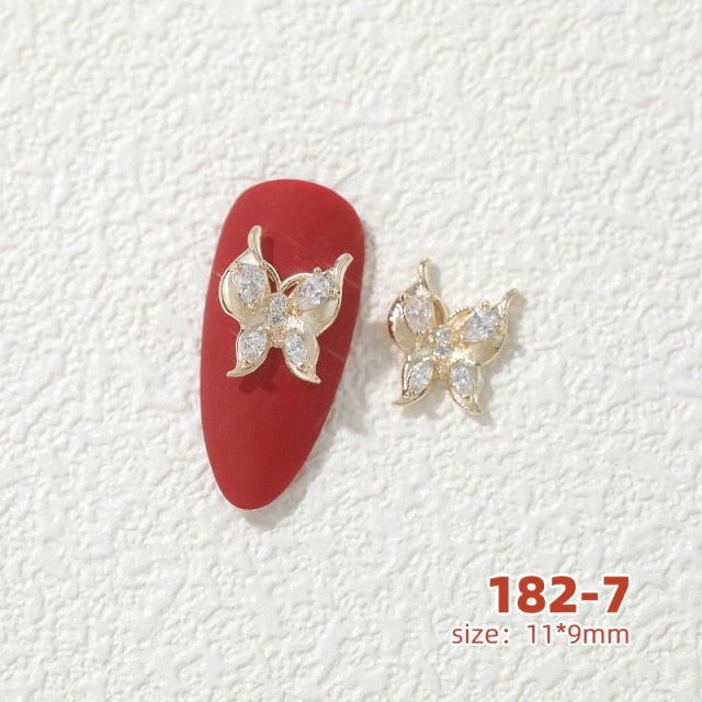 Newest 2Pieces Lot Pendant Chain 3D Alloy Butterfly Nail Art Zircon Pearl Metal Manicure Nails DIY Accessories Nail Decoration